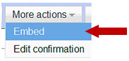 To embed, click the “More actions” tab. Click “Embed” and copy the embed code from the popup. Place the code in the page where you would like the form to appear.