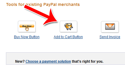 Along the top of the merchant services page is a row of 4 buttons. Click on the Add to Cart Button logo to start the button creation process.