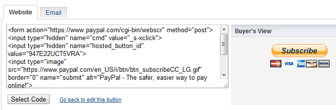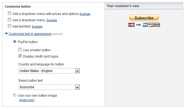 You can choose between the button saying “Subscribe” or “Buy Now.” You can use a large or small button and you can choose whether credit card icons appear.