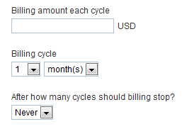 Tell PayPal how much you want to bill your customers in each billing period. Also set how long each billing cycle is.