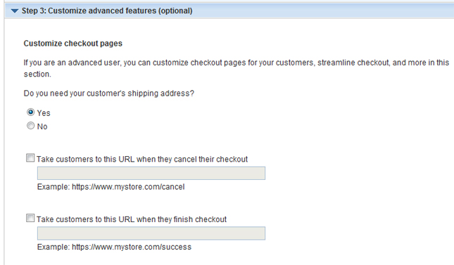 You can tell PayPal whether or not you need users to enter their shipping address, as well as where you want users to be directed to after they’ve finished the checkout process.