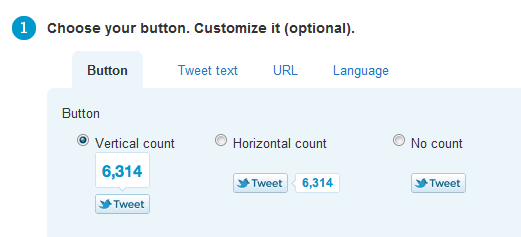 The first thing to do is choose your button. You can choose buttons with a count of tweets or no count, if you prefer.