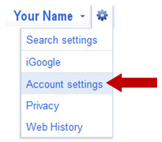 Once you have logged in, look in the top right corner of your screen and click on the “gear” beside your name. You will see a dropdown. Click on account settings.