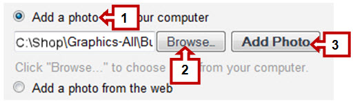 Select add a photo from your computer. Click the browse button and then the add photo button to upload it to your page. Click the submit button at the bottom of the page when finished. You may upload up to 10 images.
