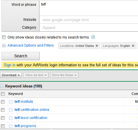 Make sure you get a wide range of different worded keywords. In other words, instead of “teach English” and “teach English overseas,” try to get a variety of foundation-level keywords: “Teach English,” “English Tutoring,” “Become an English Teacher,” “TEFL,” etc. Don’t just get the longtail keywords of one keyword.