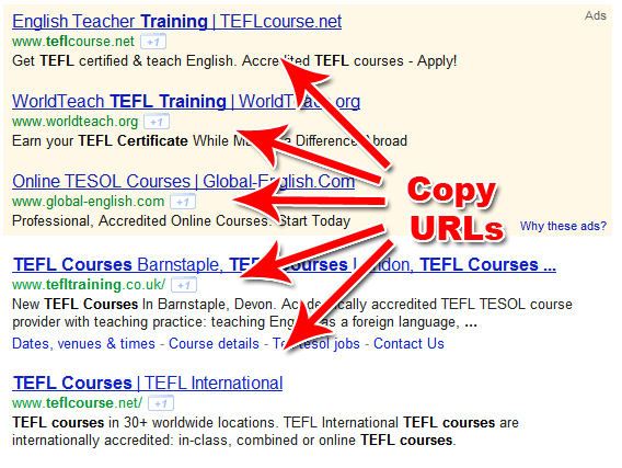 Go into Google and type in each of the keywords you found one by one. Copy and paste the top organic and AdWords results into a spreadsheet.