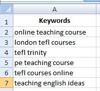 Take the keywords and enter them into a separate tab in your spreadsheet.