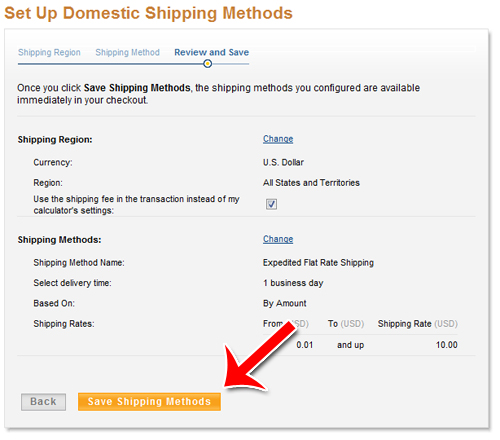 Review your settings. If everything looks in order, click Save Shipping Methods.