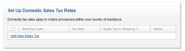 Click “Add New Sales Tax” under either domestic or international to add a new sales tax.