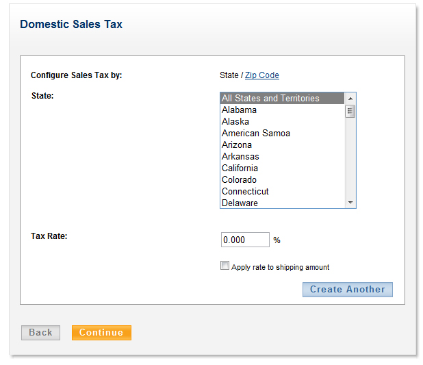 Once you’ve selected the areas you want to apply the tax to, type in the tax rate and press “Continue”.