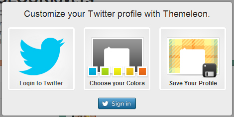 To start with Themeleon, just sign in to your Twitter account.
