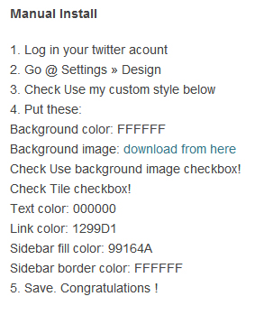If you need to do a manual install, just download the Twitter background image from the theme site.
