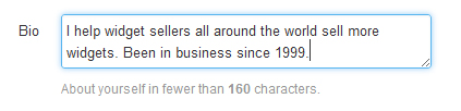 Next, write your bio. The bio goes directly under your name and Twitter account in your main page.