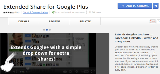Start by searching for the Google+ extension in your Chrome browser or in Google. Replace with the “Extended Share for Google Plus” plugin and install it.