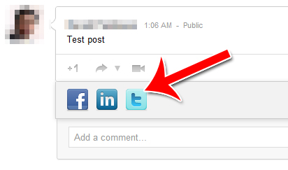 Now a new share button will be added to your Google Plus posts. Just click the “Share” button and choose which network you want to share to.