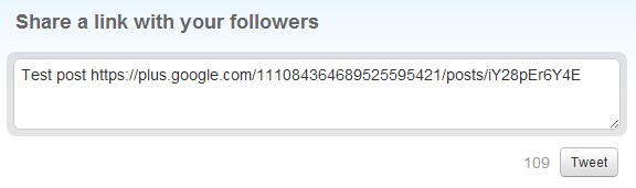 The extension will automatically populate a share box with the Google Plus post that you want to share.