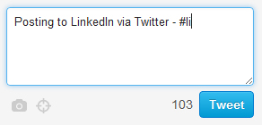 To post to your LinkedIn account from your Twitter account, just tag your twitter post with the #li hashtag. Make sure your LinkedIn account is linked to your Twitter account before doing this.