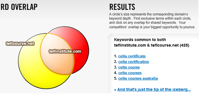 Choose the overlapping area and SpyFu will display the overlapping keywords.