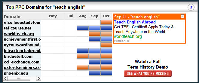 In addition to keywords and ads, SpyFu can also tell you who’s bidding against your competitor. In other words, SpyFu makes it easy to scout out the terrain to see who all the players in the industry and keyword space are.
