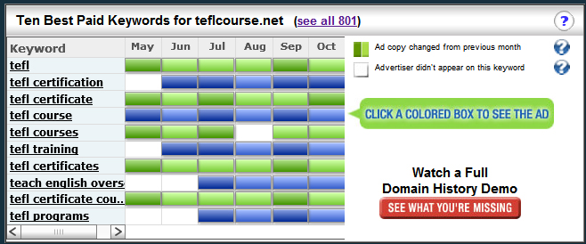 If you’re interested in one keyword, chances are you’ll also be interested in what other keywords your competitors are bidding on. SpyFu can tell you.