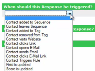 Essentially, you can tell Office Autopilot what to do if certain things occur. For example, if a customer places an order, you can send an order to your fulfillment house to fulfill that order. Or if a customer leaves, you can send them a last minute special offer. Just select the trigger for the action, then select what list it applies to then select what to do when that action is trigger.