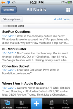 Evernote is the leading app for taking notes. It automatically uploads all your notes to its web server, so you never have to mail yourself your notes again. Furthermore, sharing your notes on Evernote is simple and easy. If you have a meeting and want to share notes with others, you can do so easily.