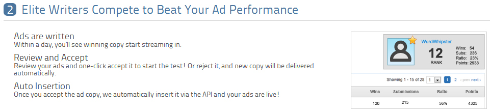 Basically, this tool allows you to get access to dozens of world class copywriters for pennies on the dollar. They’ll write ads that out convert yours and you only have to pay them if they can beat your controls.